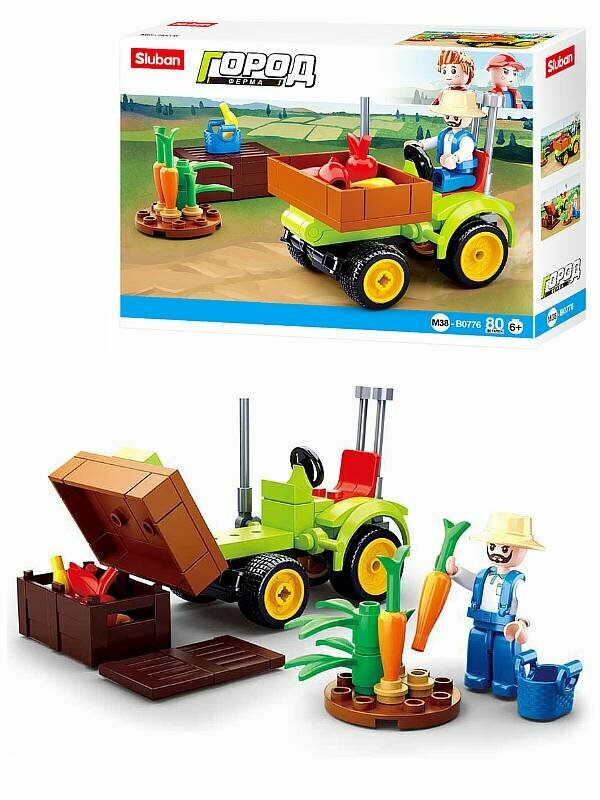 Купить Конструктор пластиковый. SLUBAN Город. Трактор с урожаем (80 деталей). Арт. M38-B0776