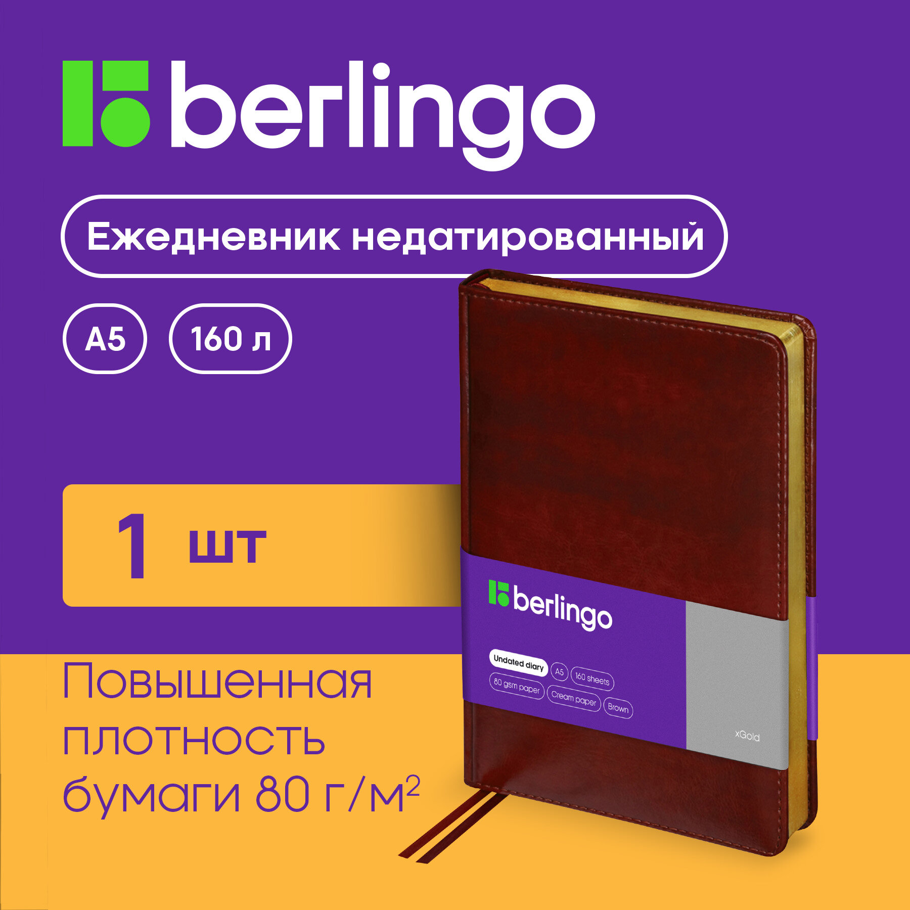 Ежедневник недатированный Berlingo A5, 160 листов, кожзам, "xGold", золотой срез, коричневый (UD0_81503)