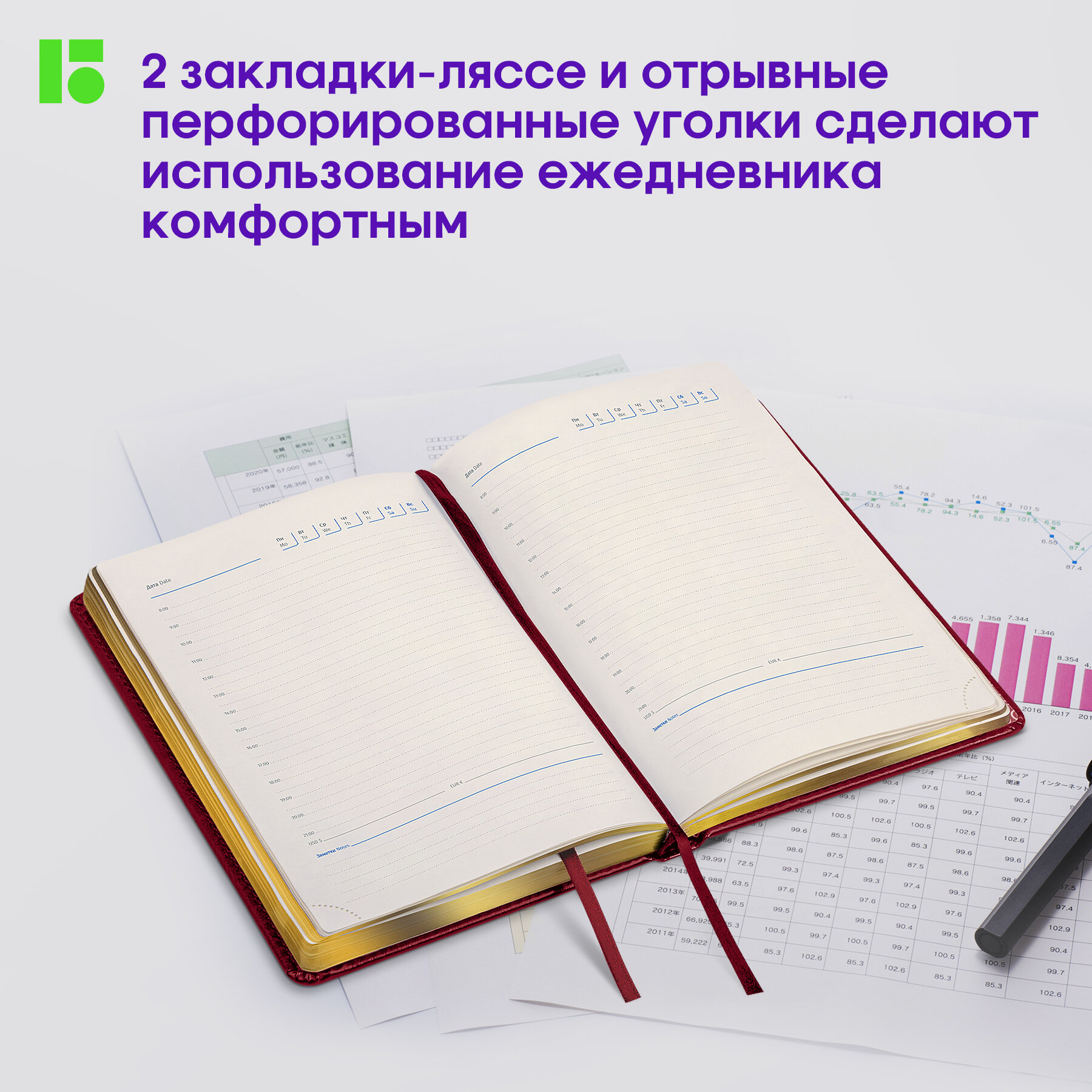 Ежедневник недатированный A5 160 листов, кожзам, Berlingo "xGold", золотой срез, бордовый