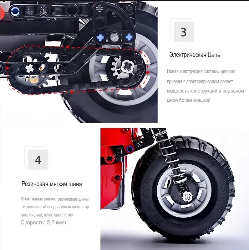 Конструктор радиоуправляемый CADA deTech гоночный мотоцикл (29 см, 2 двигателя, 484 детали) - C51024
