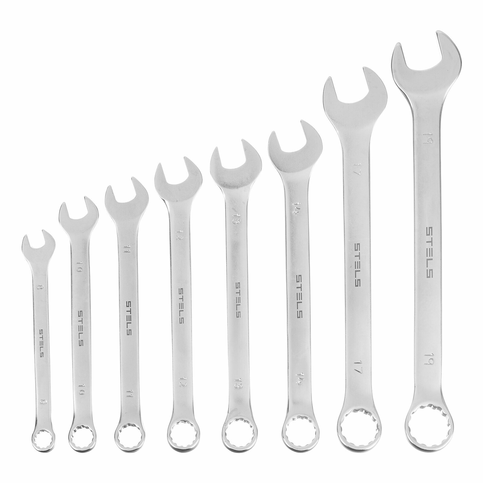 Набор ключей комбинированных Stels 8 - 19 мм, 8 шт, CrV, матовый хром 15428