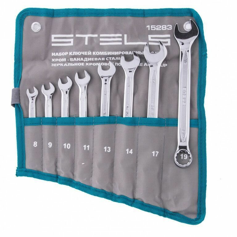 Набор комбинированных ключей STELS EQUIPMENT STELS 15428, 8 - 19 мм, 8 шт., CrV, матовый хром