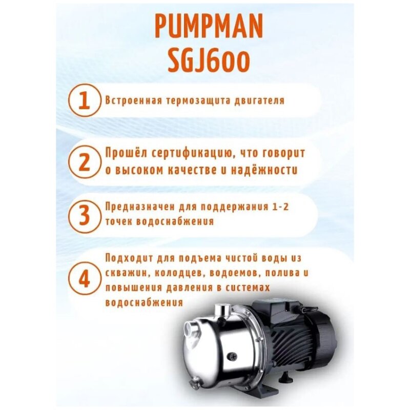 Поверхностный самовсасывающий насос Pumpman SGJ800 интересное: