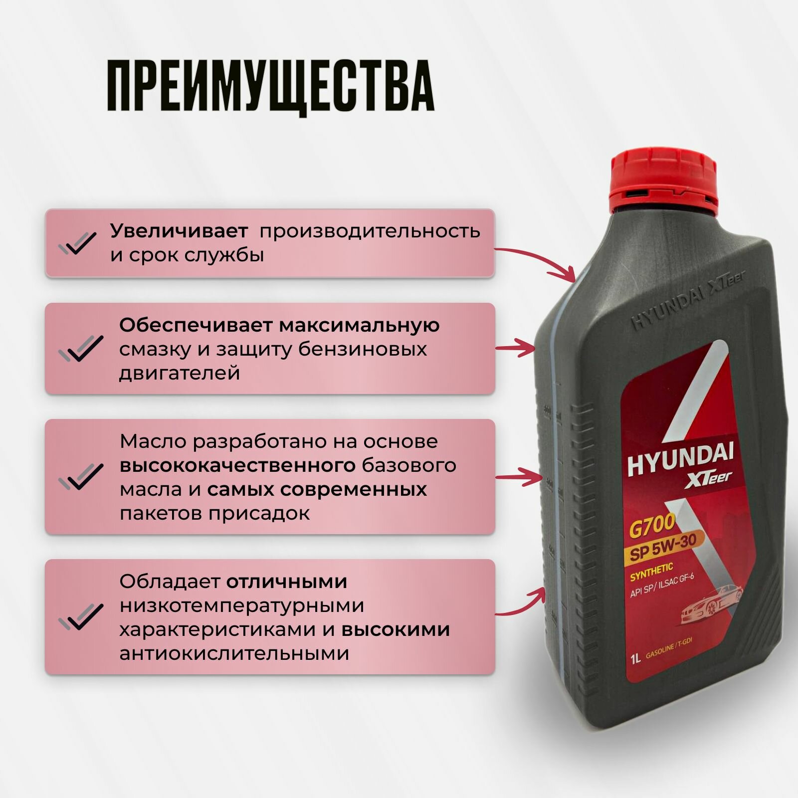 hyundai xteer gasoline g700 5w30 (1l)_масло моторн.! синт.\ api sp, ilsac gf-5, gf-6