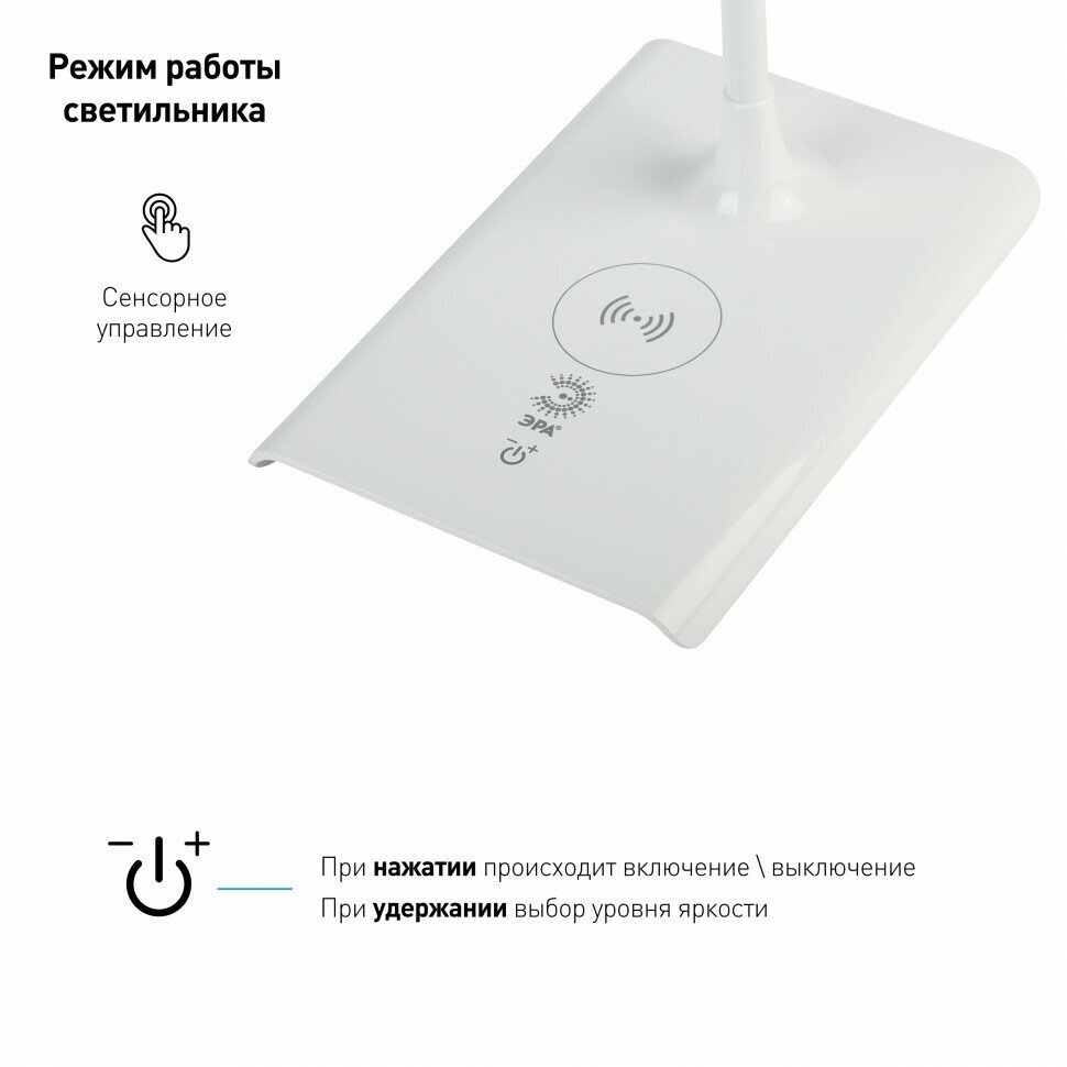 Офисная настольная лампа светодиодная с диммером и выключателем регулировкой яркости и беспроводным ЗУ NLED-474-10W-W (ЭРА)