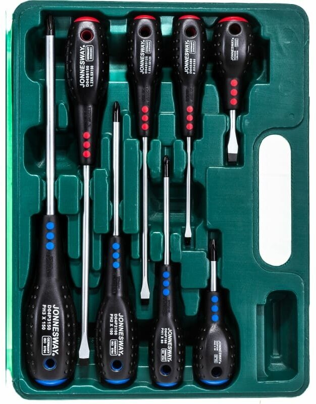 Набор отверток шлиц и крест full star sl 6,5х38-6,5х150 ph#1-3, 8 предметов Jonnesway D04PP08S
