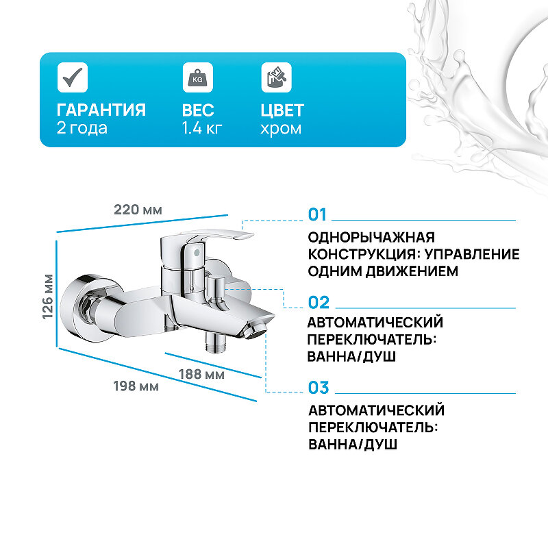 Смеситель для ванны GROHE Eurosmart, хром (33300003)