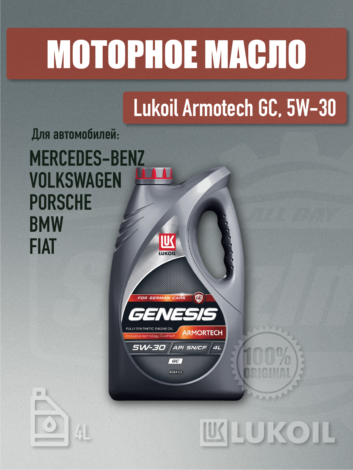 Масло лукойл 5w30 genesis armortech gc api sn/cf c3 504.00/507.00 bmw ll-04 4л син