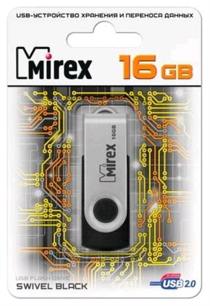 Флешка 16GB Mirex Swivel, USB 2.0, Черный