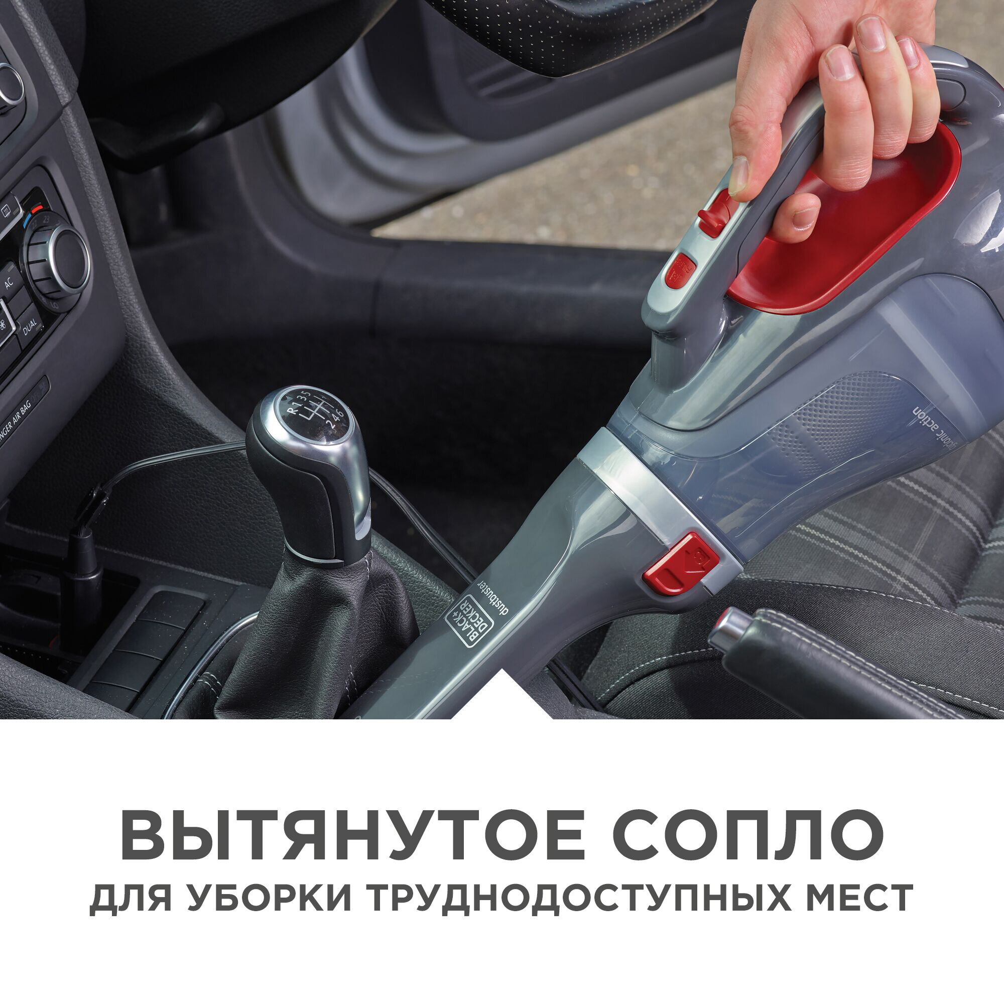 Автомобильный пылесос Dustbuster с набором аксессуаров BLACK+DECKER ADV1200-XK 12 В, 1053 л/мин, 275 мм/в.столба, емкость пылесборника 610 мл, набор аксессуаров