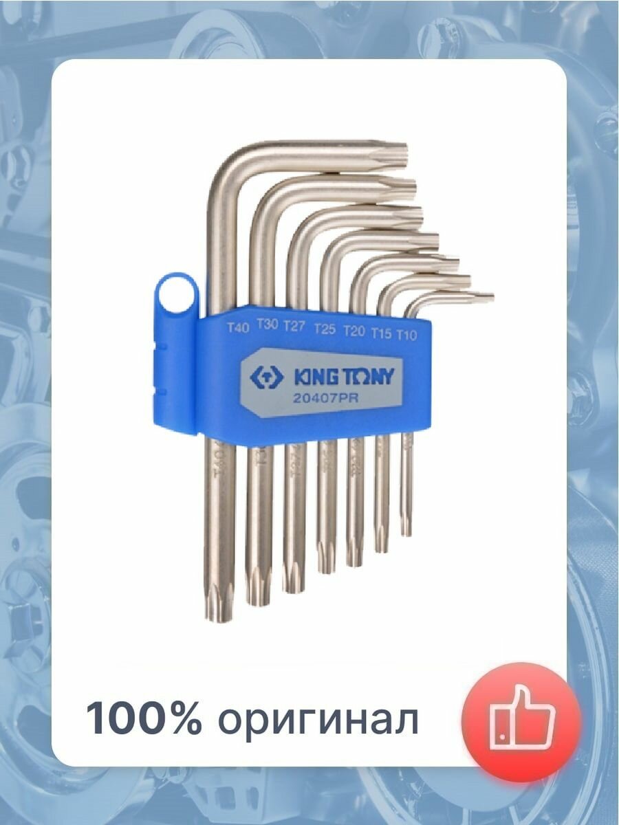 Купить Набор Г-образных Torx, T10H-T40H, короткие, с отверстием, 7 предметов KING TONY 20407PR