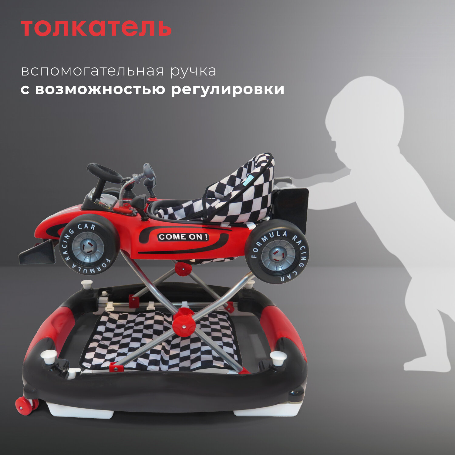 | Отзыв: | Ходунки сделаны в стиле гоночной машины, смотрится здорово, брали в красной расцветке для сына) |