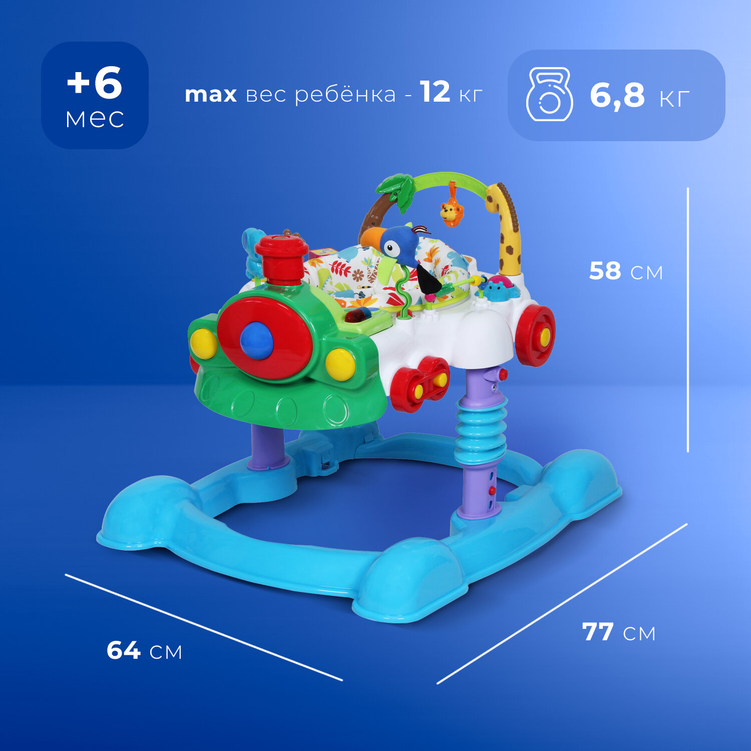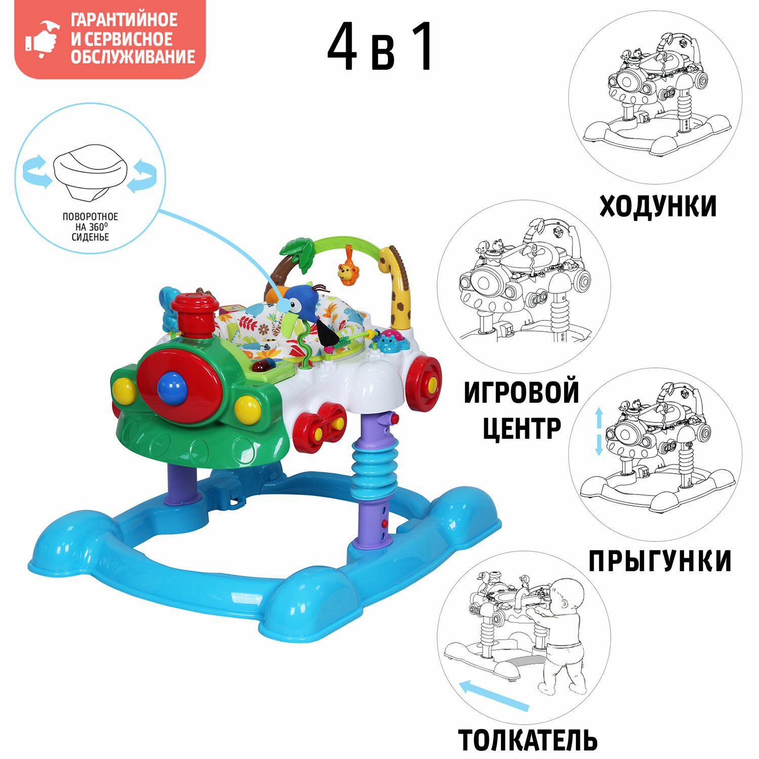 Ходунки-прыгунки Nuovita Treno 4 в 1: ходунки, прыгунки, игровой центр, толкатель (Azzurro/Голубой) интересное: