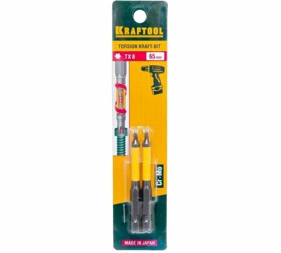 Биты KRAFTOOL ″INDUSTRIE″ торсионные, обточенные, для механизированного инструмента, TX 8, 65мм, 2шт
