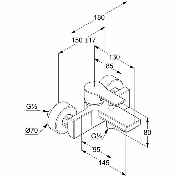 Смеситель KLUDI ZENTA SL для ванны и душа, однозахватный, настенный (хром) 486700565