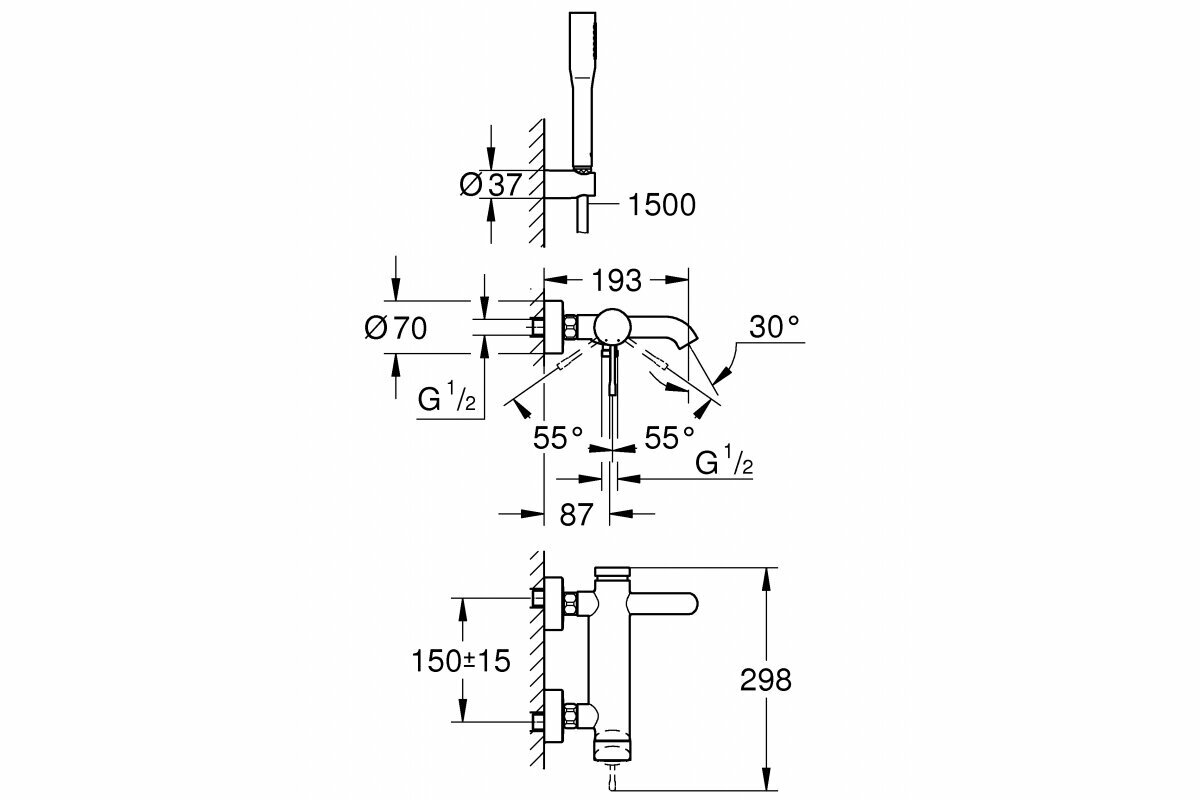 Смеситель для ванны Grohe Essence+ с душевым гарнитуром (33628001)