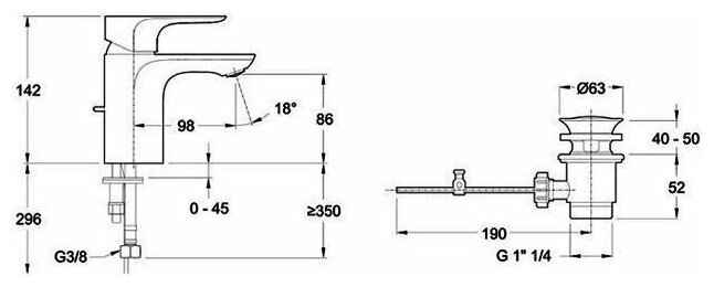 Jacob Delafon Смеситель ALEO+ E72357-CP для раковины с поворотным изливом с донным клапаном