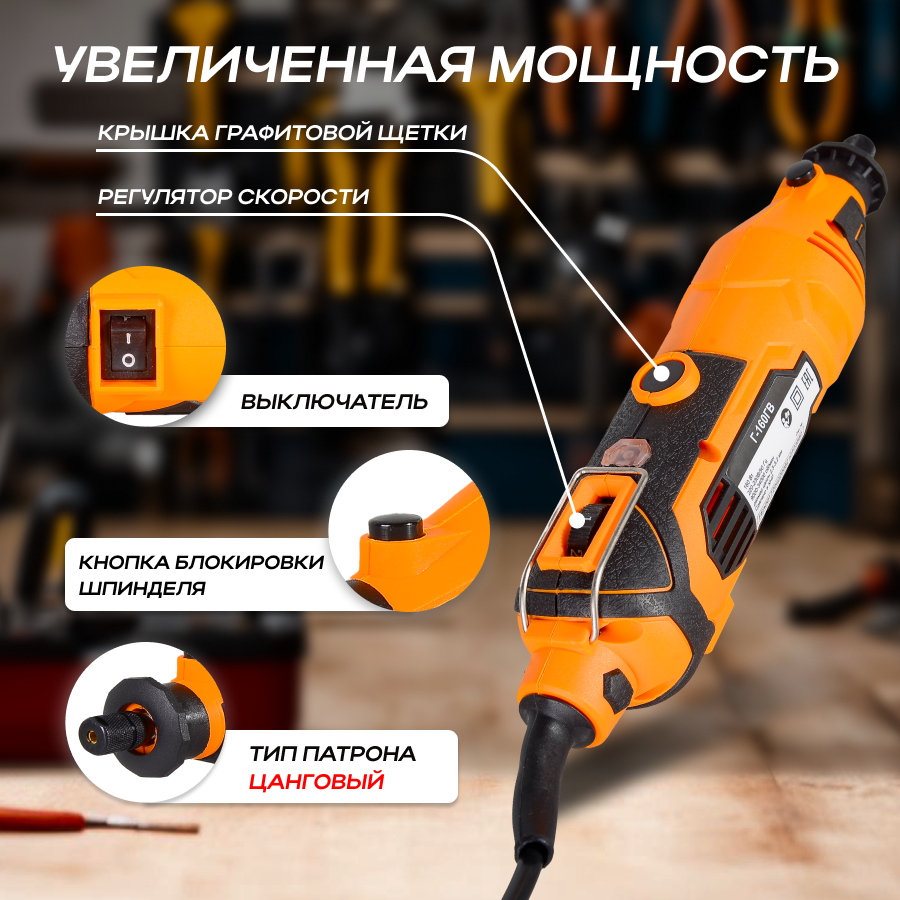 | Плюсы: | Аккуратный. Выносливый. Подходит для сверления, резки, шлифования, гравировки мелочевки в домашних условиях. |