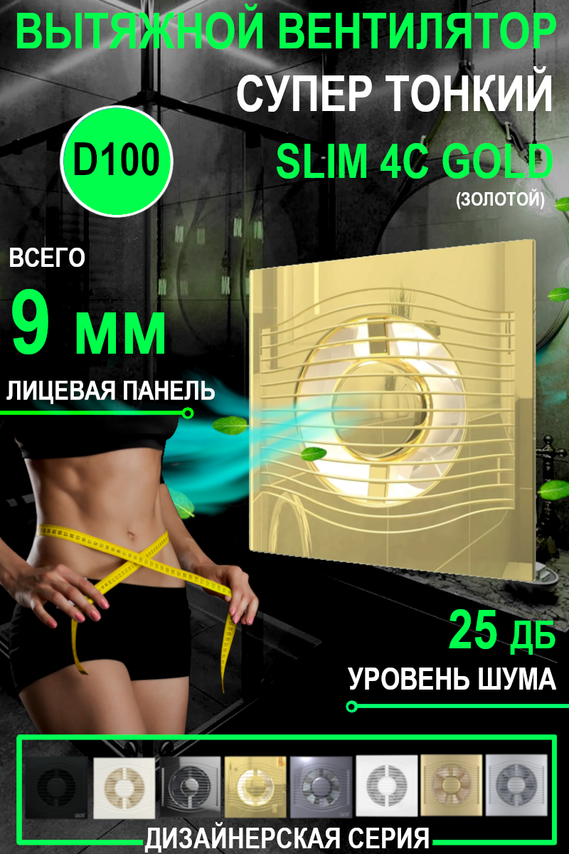 Купить Вентилятор осевой вытяжной с обратным клапаном D 100, декоративный, SLIM 4C Gold