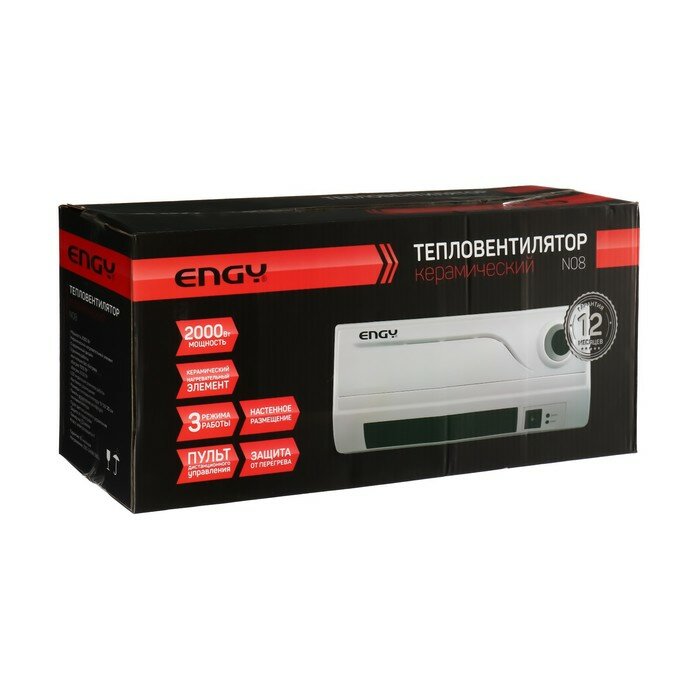 Тепловентилятор Engy N08, 2000 Вт, настенный, керамический, пульт, таймер, белый Engy .