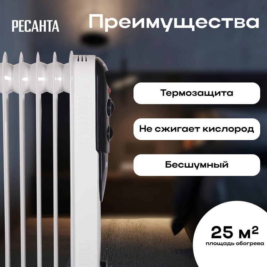 Масляный радиатор РЕСАНТА ОМПТ-12Н, 2,5 кВт, до 25м2,11 секциц