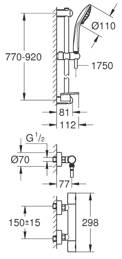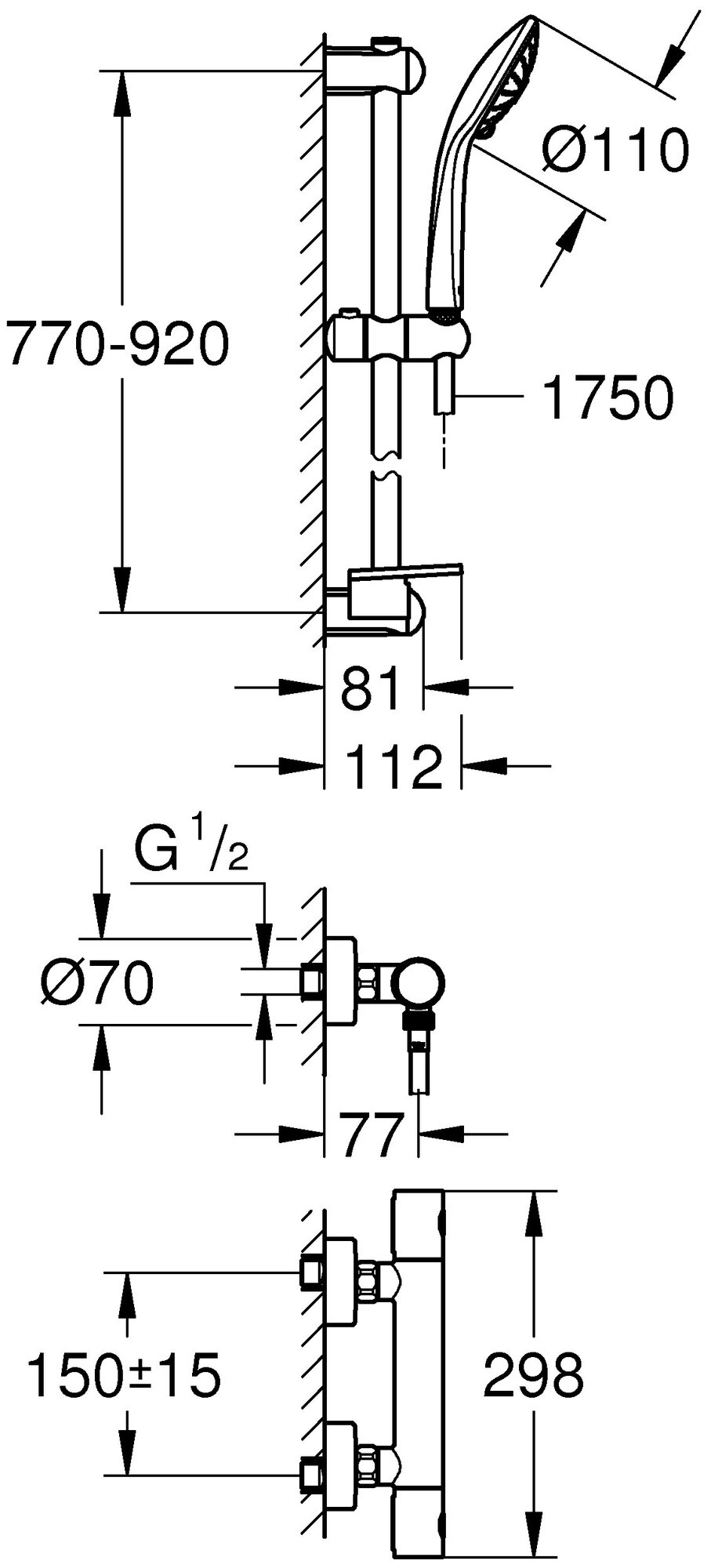 GROHE Термостатический смеситель для душа GROHE Grohtherm 1000 Cosmopolitan New с душевым гарнитуром (штанга 900 мм), хром (34321002)