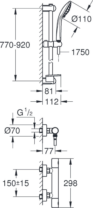 GROHE Термостатический смеситель для душа GROHE Grohtherm 1000 Cosmopolitan New с душевым гарнитуром (штанга 900 мм), хром (34321002)