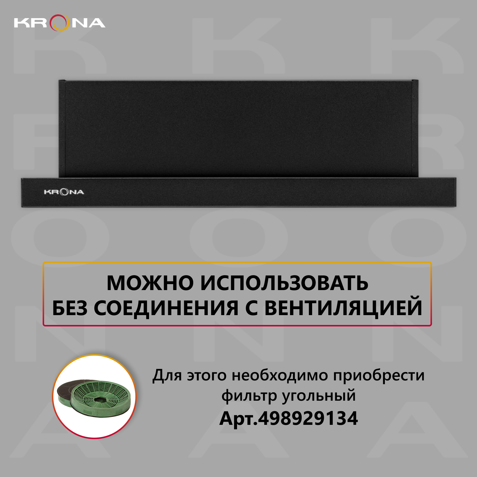 Воздухоочиститель встраиваемый Krona Kamilla 600 BK (2мотора)