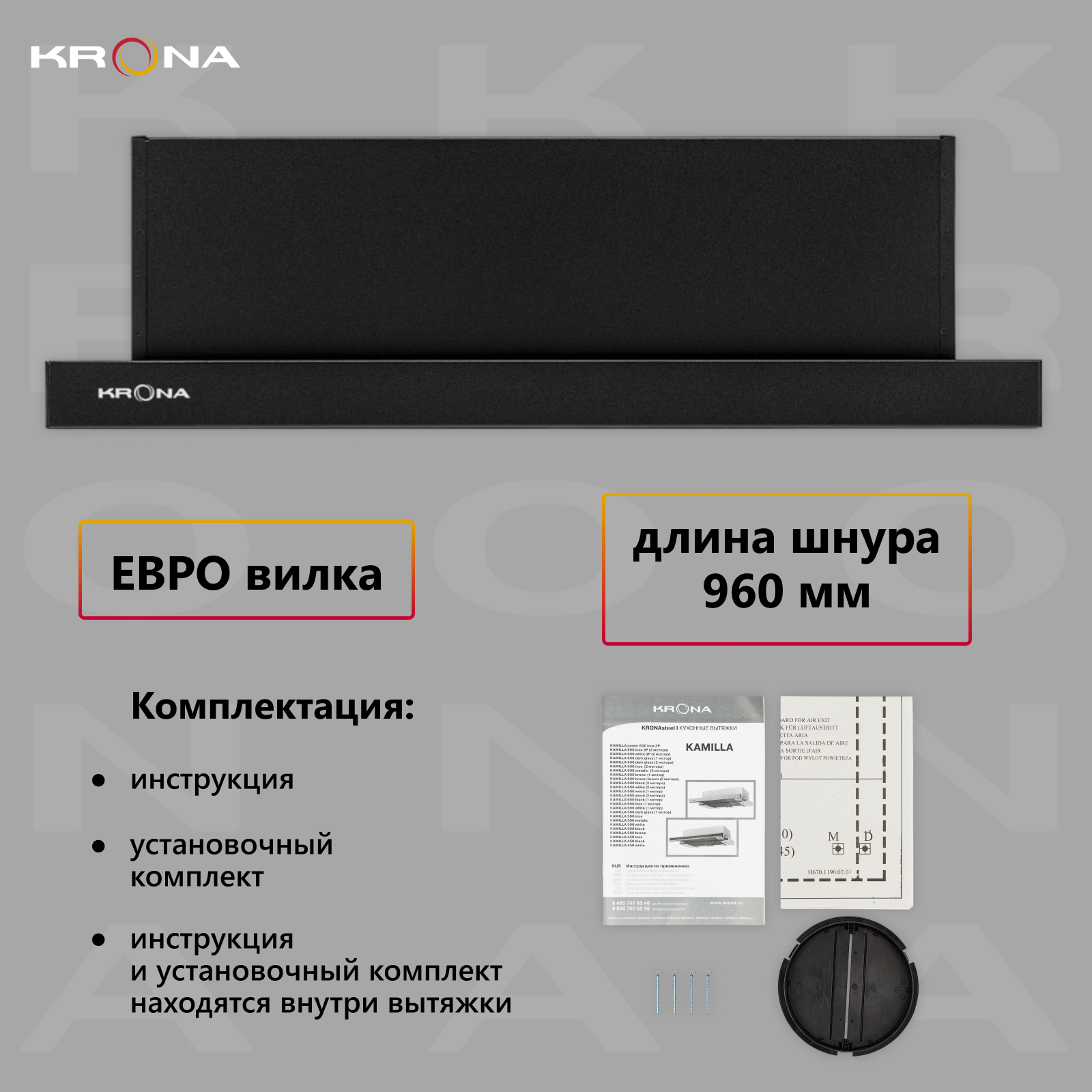 Вытяжка Krona "Kamilla" 600 black 2m