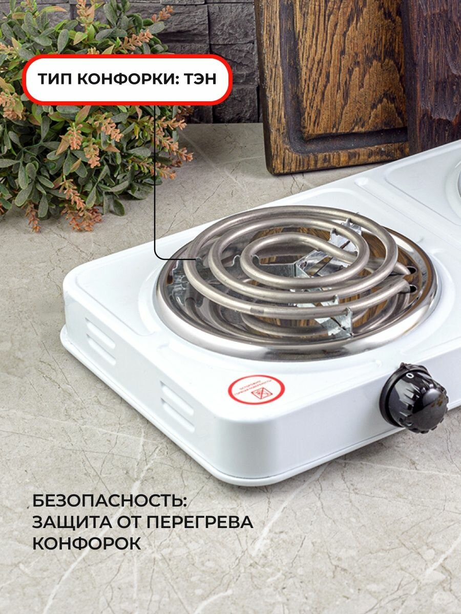 | Дополнительная информация | защита от перегрева; вес 1,2 кг; диаметр конфорок 14 см |