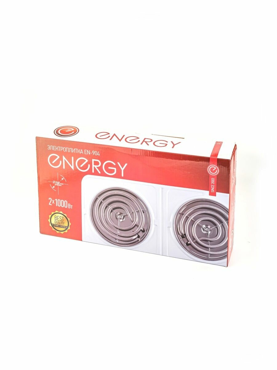 Электроплитка Energy EN-904 белая 2-х конфорочная (спиральный ТЭН) 1.0 кВт, 140мм (158904)
