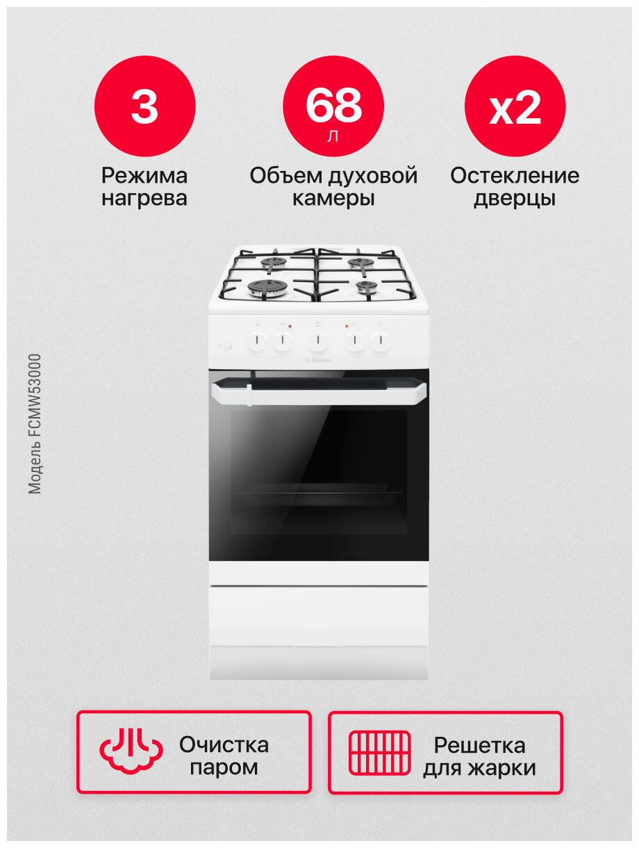 Газовая плита Hansa FCMW53000, электрическая духовка, белый