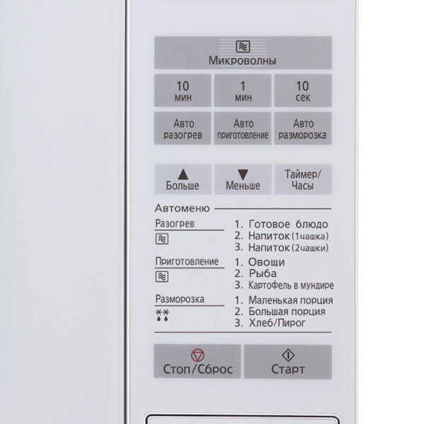 | Дополнительные режимы | автоматическая разморозка / звуковой сигнал отключения / автоматическое приготовление / автоматический разогрев / ускоренная разморозка |