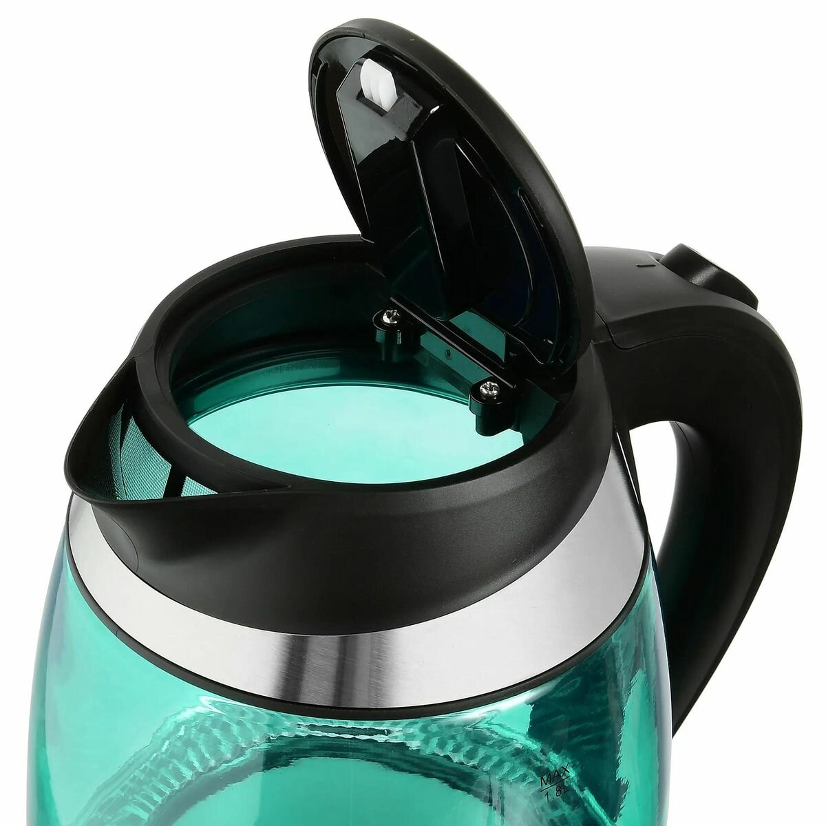 Чайник электрический Starwind SKG2219, 1.8 л, 2200 Вт, бирюзовый/черный, стекло