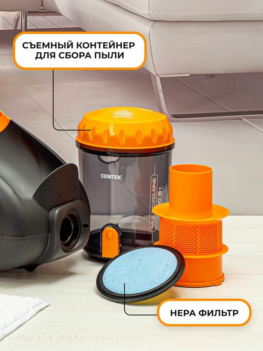 Пылесос Centek CT-2520 Orange, 2200/400 Вт, 2 л, мультициклон, оранжевый Centek 9910751 .