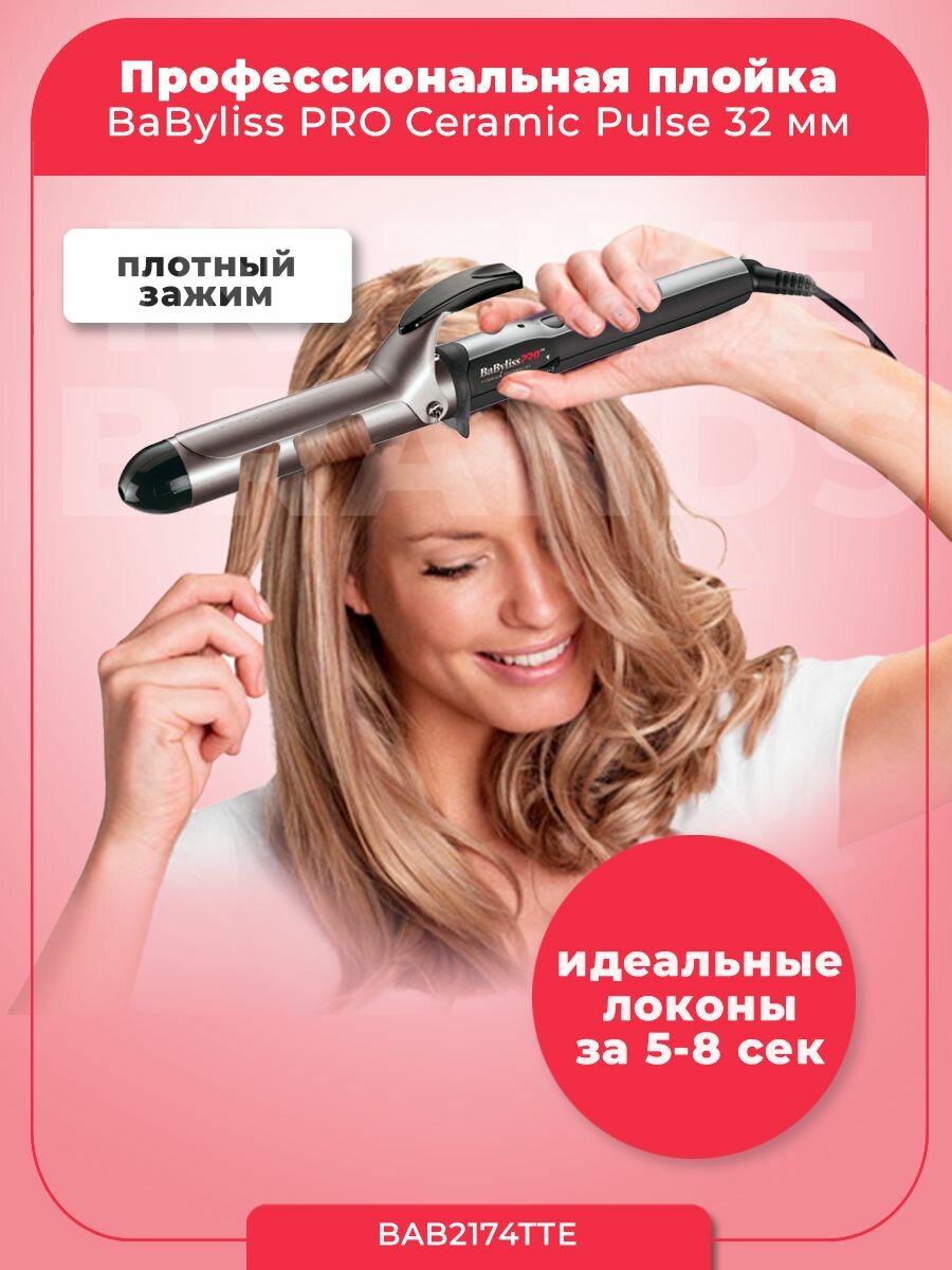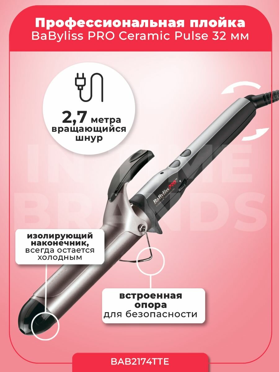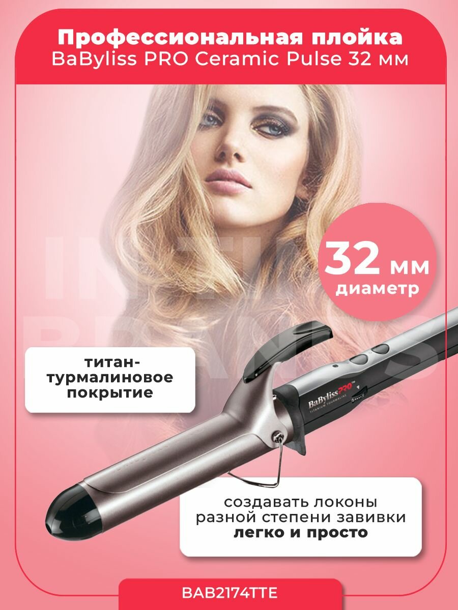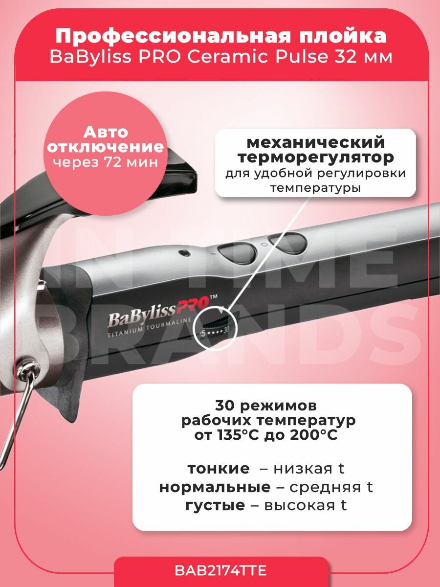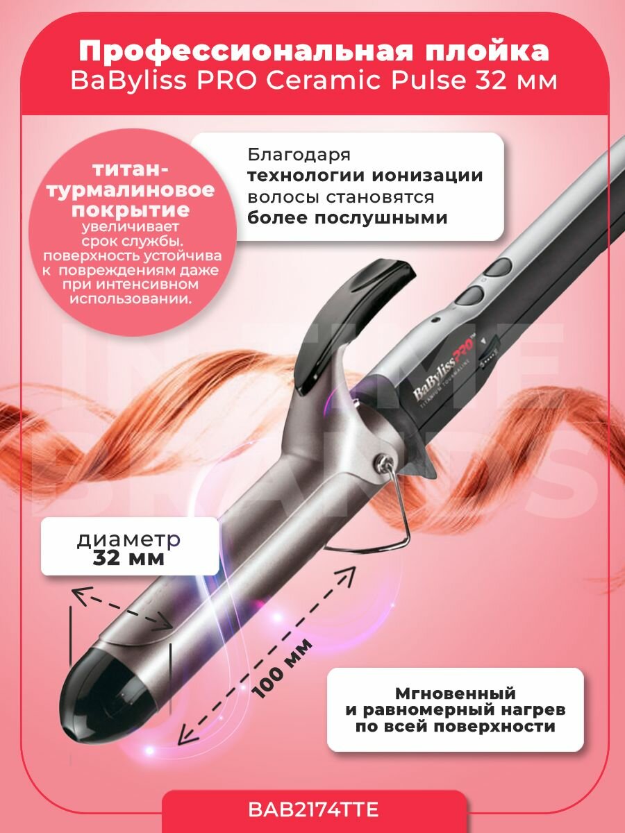 Плойка для завивки волос профессиональная BaByliss PRO BAB2174TTE Ceramic Pulse, титаново-турмалиновое покрытие, автовыключение, 135-200 C, 32 мм
