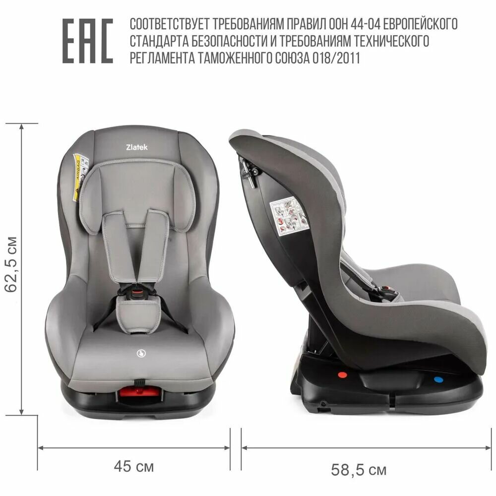 Автокресло ZLATEK Galleon серый, гр. 0+/I, 0-18 кг, 0-4 лет 0-18 кг