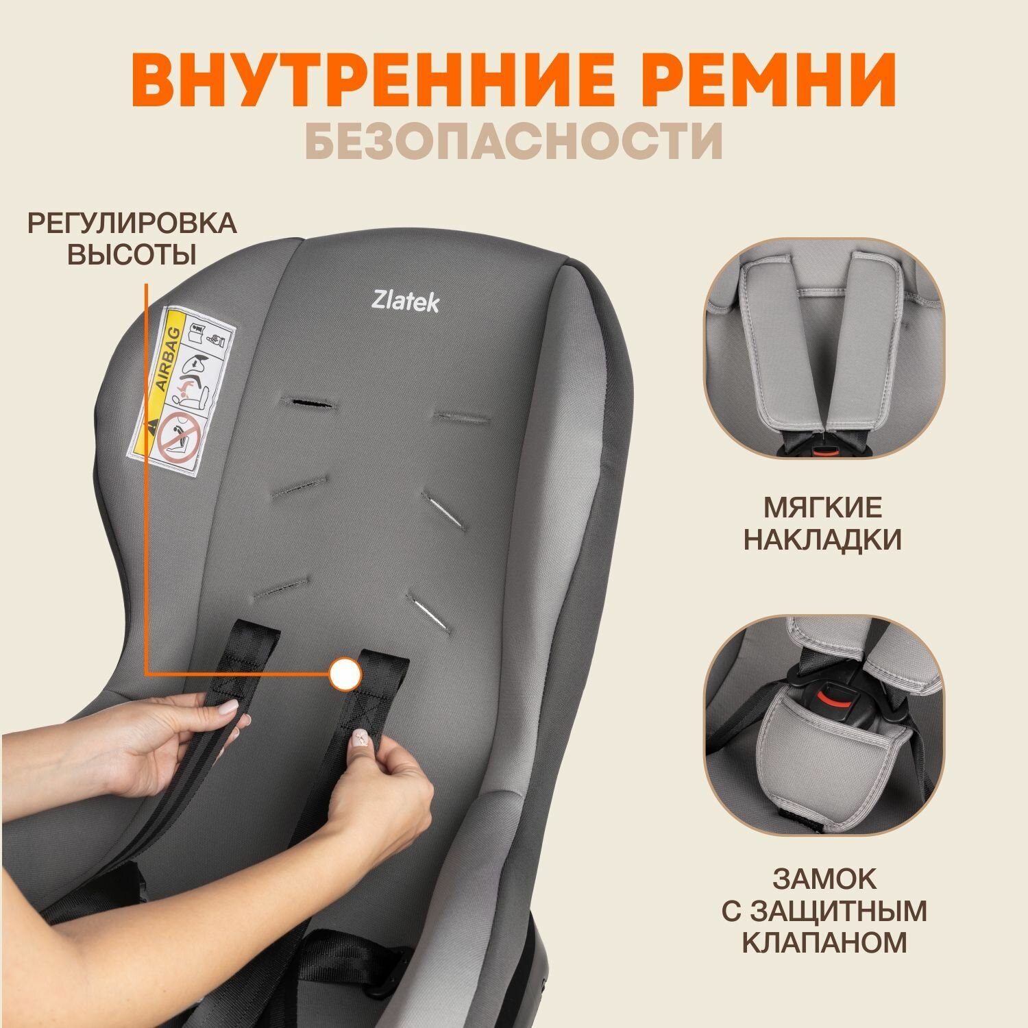 Автокресло ZLATEK Галеон серый (0-18 кг)