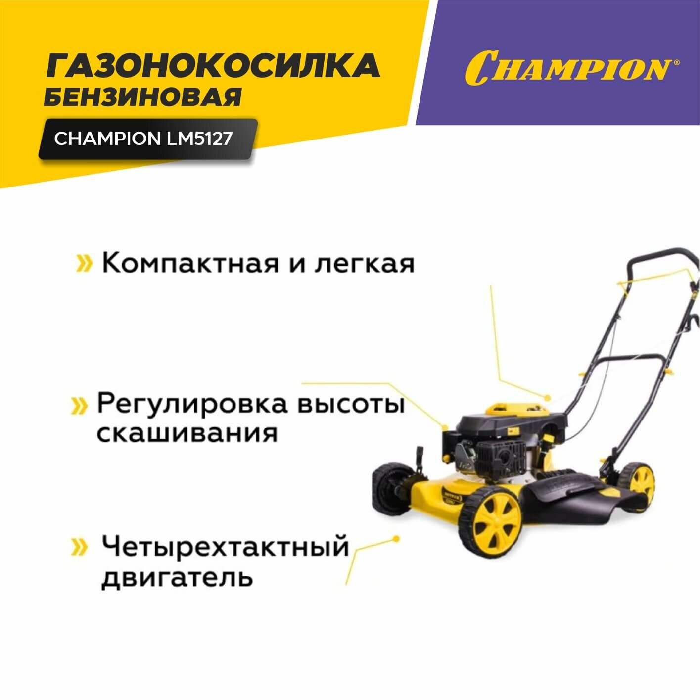 Газонокосилка бензиновая CHAMPION LM5127 + масло в подарок