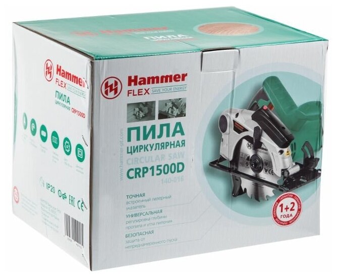 Пила циркулярная HAMMER FLEX CRP1500D 1500Вт, d=190мм, 4700об/мин