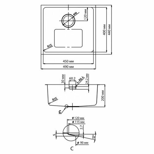 | Дополнительная информация | монтаж под столешницу, шумоподавляющее покрытие, радиус угла закругления 25 мм |