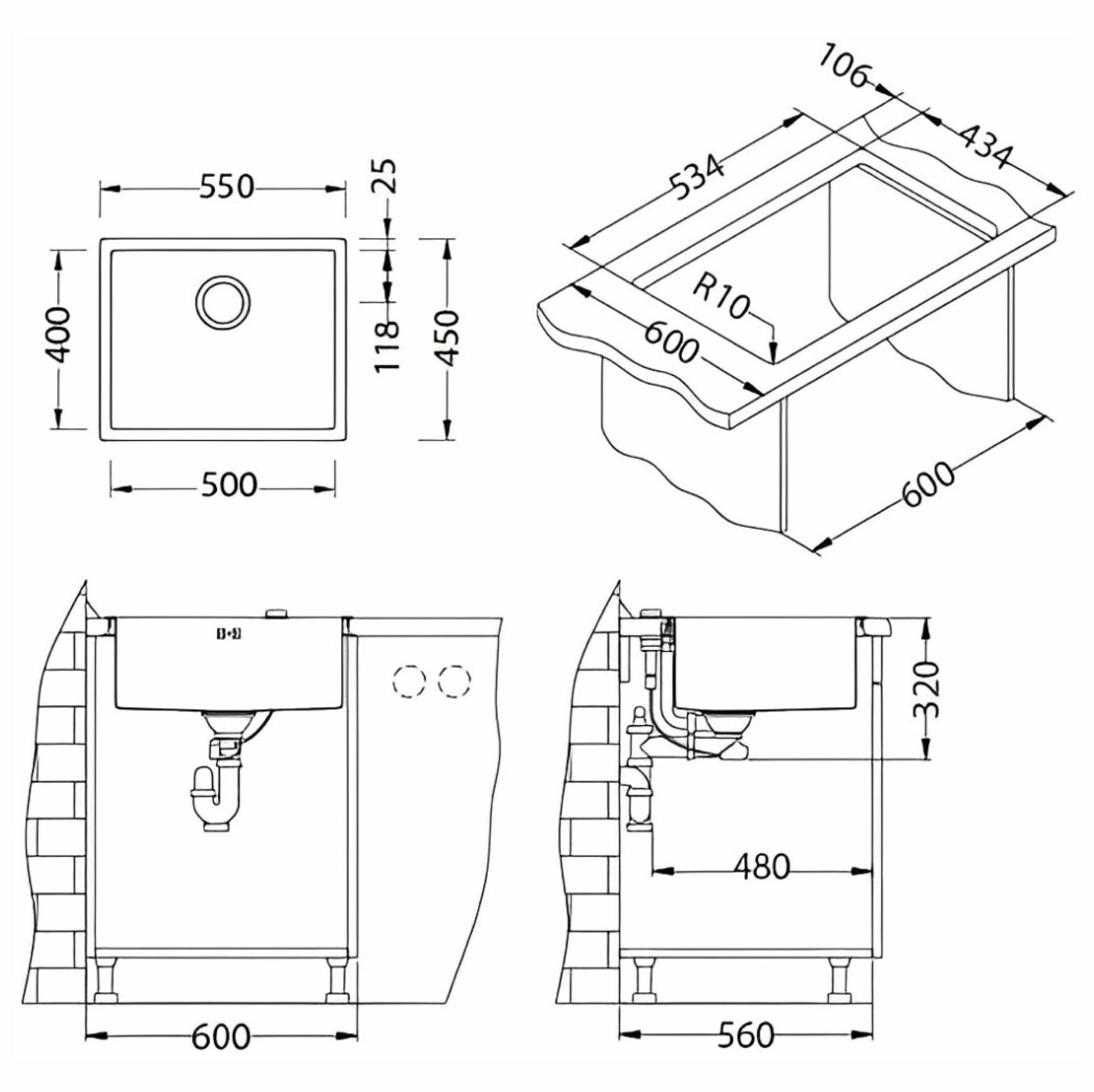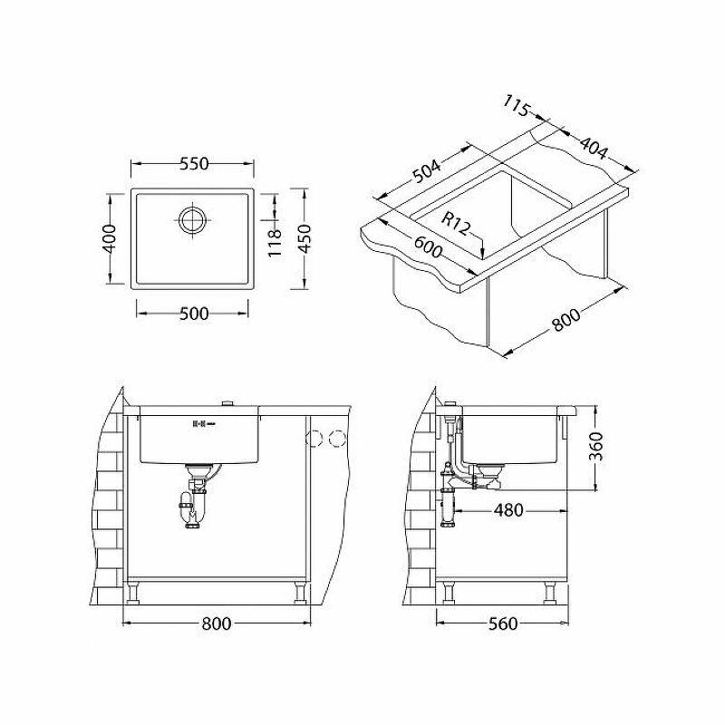 Мойка QUADRIX 50 BRS-90 550X450X200 в комплекте с сифоном 1130550,