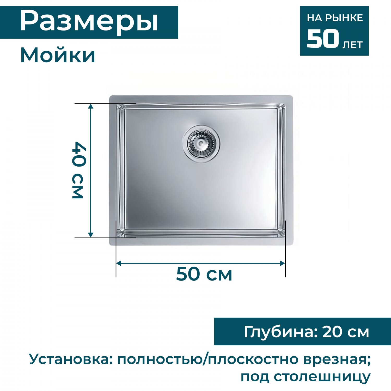 Кухонная мойка ALVEUS QUADRIX 50 BRS-90 550 X 450 X 199 нерж.сталь