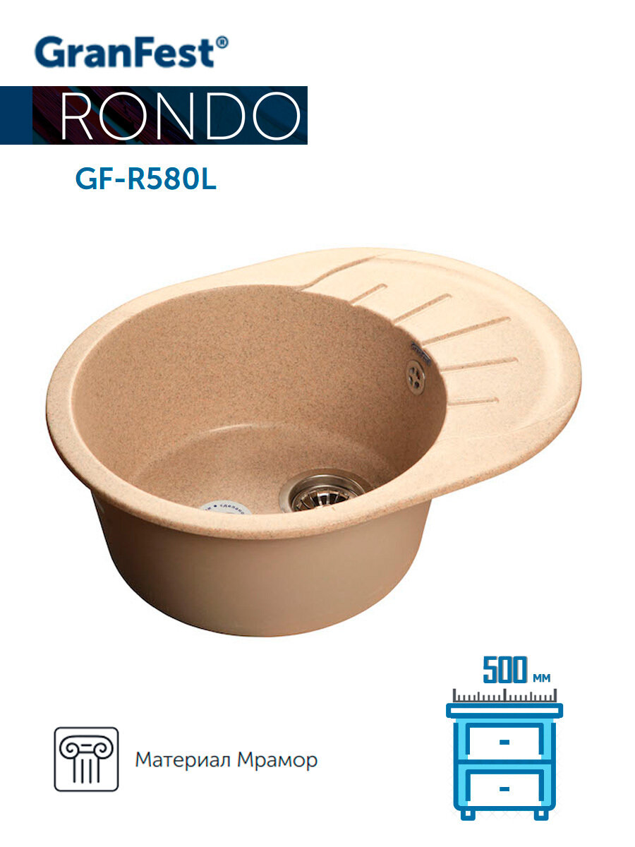Мойка GranFest мрамор RONDO GF-R-580L чаша с крылом 579*445 мм песочный