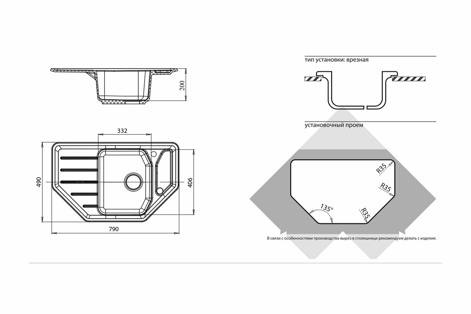 Мойка GRANFEST GF-C800E угловая 790*490 мм (топаз)