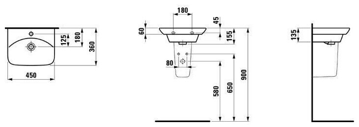 Раковина Laufen Palace 8.1570.1.000.104.1 45 см интересное: