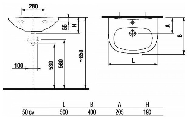 Подвесная раковина Jika Zeta 50х40х19см, арт. 8103900001049, санфарфор, с отв. под смес