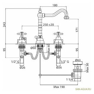Смеситель для раковины Cezares First для раковины на 3 отверстия, с донным клапаном, бронза, ручки Металл (First-BLS2-02-M)