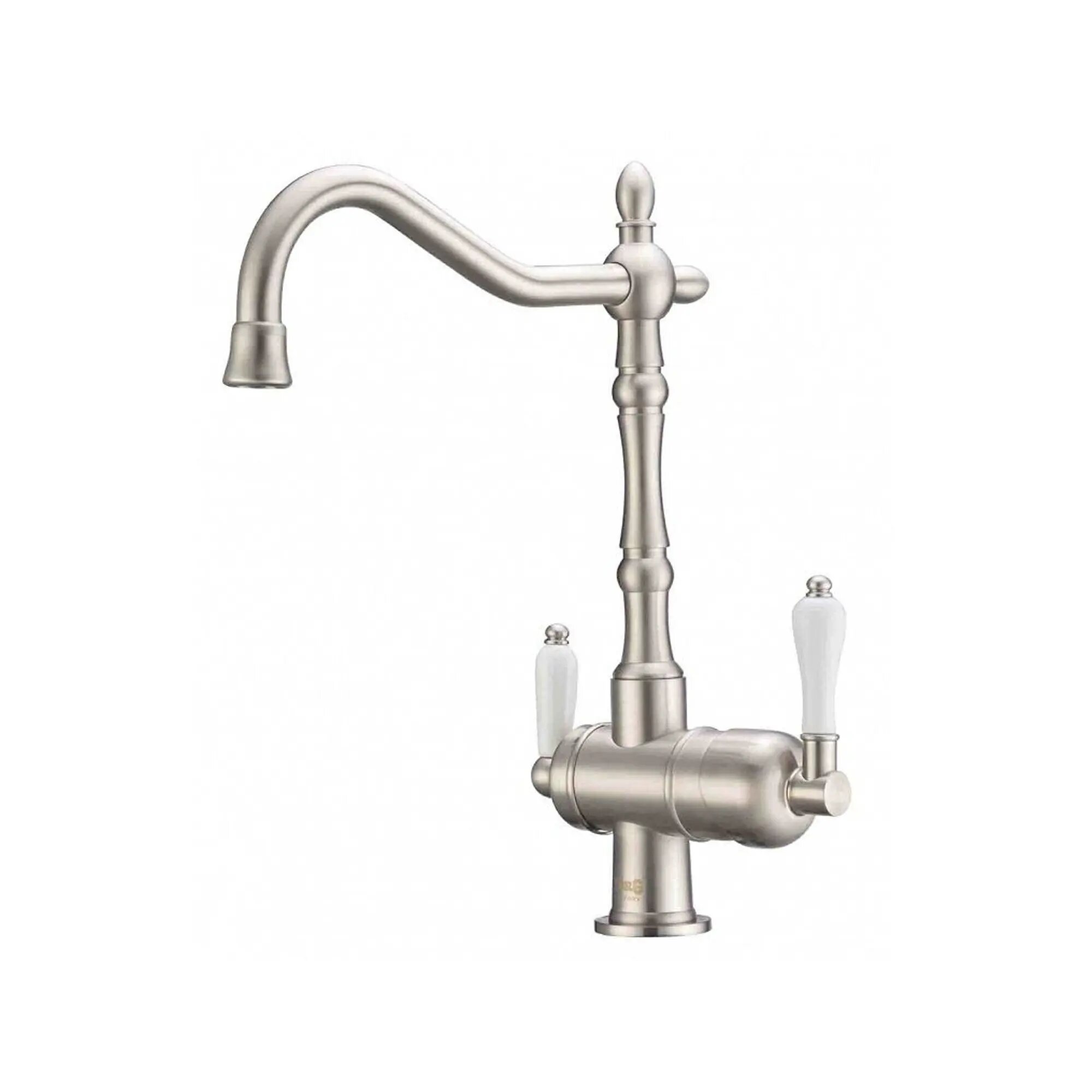Купить Смеситель для кухни под фильтр ZorG ZR 326 YF SATIN, сатин никель матовый, ретро, ручки керамика, высокий, премиум