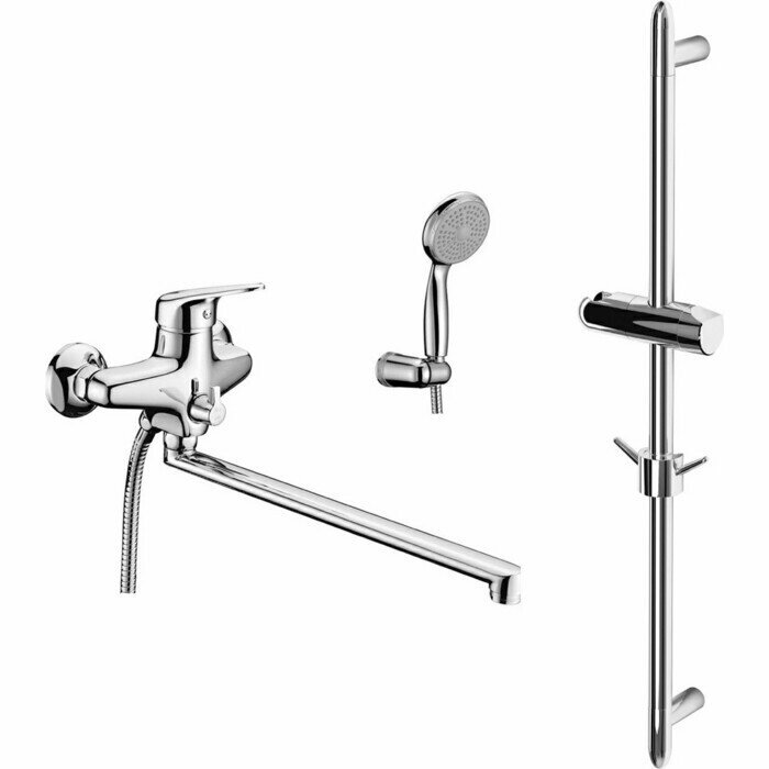 | Комплектация | Смеситель / шланг / настенное поворотное крепление / лейка / металлическая рукоятка |